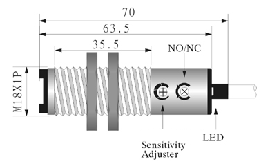 1. Method of Detection: direct reflection type 2. Detecting Distance: 10, 40 cm 3. Output: NPN NO/NC, PNP NO/NC 4. Power Supply: DC 10 ~ 30V 5. Wiring Material: PVC oil resistance 6. Degree of Protection: IP66
